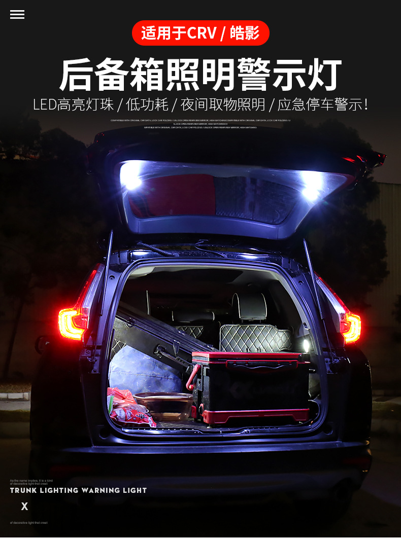 本网页所展示的有关【适用17-22款本田CRV后备箱照明警示灯皓影尾箱led露营氛围灯改装_汽车灯具_广州市路漫漫汽车配件有限公司】的信息/图片/参数等由全球零部件网的会员【广州市路漫漫汽车配件有限公司】提供,由全球零部件网会员【广州市路漫漫汽车配件有限公司】自行对信息/图片/参数等的真实性、准确性和合法性负责,本平台(本网站)仅提供展示服务,请谨慎交易,因交易而产生的法律关系及法律纠纷由您自行协商解决,本平台(本网站)对此不承担任何责任。您在本网页可以浏览【适用17-22款本田CRV后备箱照明警示灯皓影尾箱led露营氛围灯改装_汽车灯具_广州市路漫漫汽车配件有限公司】有关的信息/图片/价格等及提供【适用17-22款本田CRV后备箱照明警示灯皓影尾箱led露营氛围灯改装_汽车灯具_广州市路漫漫汽车配件有限公司】的商家公司简介、欧宝(中国)等信息。