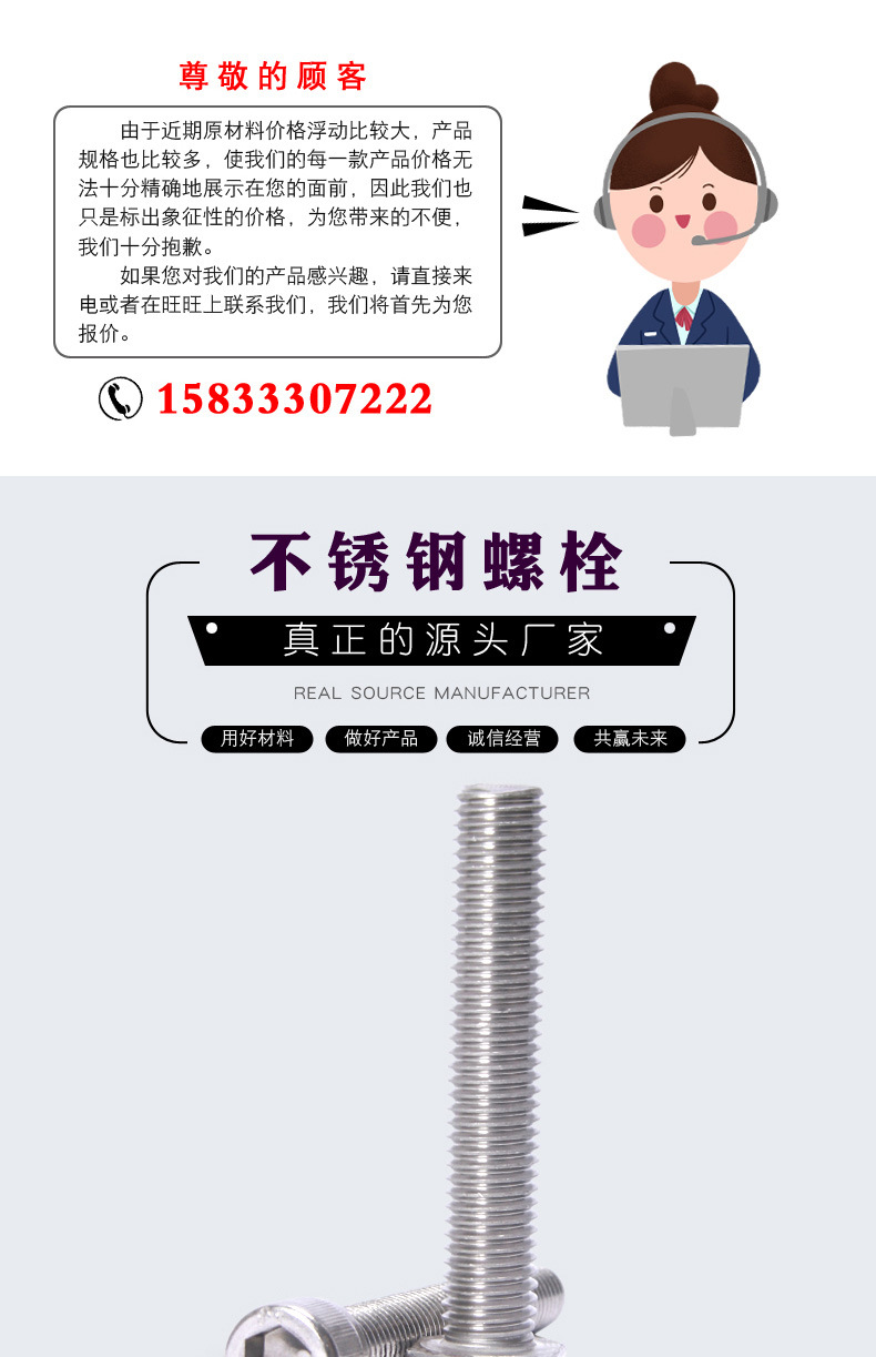 本网页所展示的有关【304不锈钢外六角螺栓m16外六角螺丝 316L材质不锈钢螺栓螺母A4-70_六角螺栓_邯郸市达强紧固件制造有限公司】的信息/图片/参数等由全球零部件网的会员【邯郸市达强紧固件制造有限公司】提供,由全球零部件网会员【邯郸市达强紧固件制造有限公司】自行对信息/图片/参数等的真实性、准确性和合法性负责,本平台(本网站)仅提供展示服务,请谨慎交易,因交易而产生的法律关系及法律纠纷由您自行协商解决,本平台(本网站)对此不承担任何责任。您在本网页可以浏览【304不锈钢外六角螺栓m16外六角螺丝 316L材质不锈钢螺栓螺母A4-70_六角螺栓_邯郸市达强紧固件制造有限公司】有关的信息/图片/价格等及提供【304不锈钢外六角螺栓m16外六角螺丝 316L材质不锈钢螺栓螺母A4-70_六角螺栓_邯郸市达强紧固件制造有限公司】的商家公司简介、欧宝(中国)等信息。