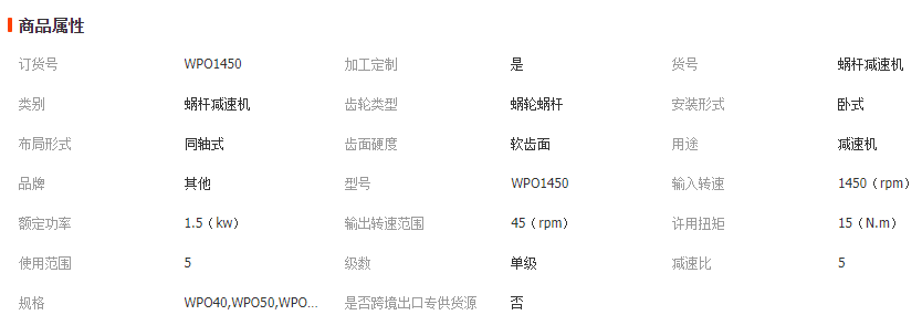 WP系列减速机,蜗杆采用45#钢经热处理加工制造,蜗轮用锡青铜铸制而成,抗磨性能良好,尤其在承载能力上较为明显,主要适用于塑料、冶金、饮料、矿山、起重运输、化工建筑等各种机械设备的减速传动。
