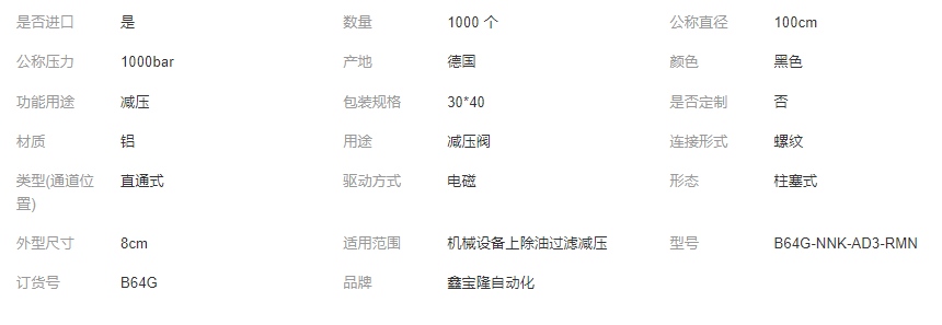 本网页所展示的有关【诺冠调压阀B68G-NNK-AR3-RLN过滤器减压阀norgren电磁阀_电磁阀_深圳市鑫宝隆自动化科技有限公司】的信息/图片/参数等由全球零部件网的会员【深圳市鑫宝隆自动化科技有限公司】提供,由全球零部件网会员【深圳市鑫宝隆自动化科技有限公司】自行对信息/图片/参数等的真实性、准确性和合法性负责,本平台(本网站)仅提供展示服务,请谨慎交易,因交易而产生的法律关系及法律纠纷由您自行协商解决,本平台(本网站)对此不承担任何责任。您在本网页可以浏览【诺冠调压阀B68G-NNK-AR3-RLN过滤器减压阀norgren电磁阀_电磁阀_深圳市鑫宝隆自动化科技有限公司】有关的信息/图片/价格等及提供【诺冠调压阀B68G-NNK-AR3-RLN过滤器减压阀norgren电磁阀_电磁阀_深圳市鑫宝隆自动化科技有限公司】的商家公司简介、欧宝(中国)等信息。